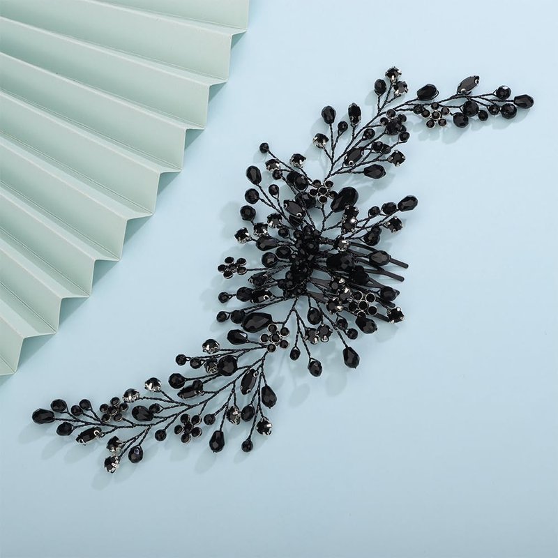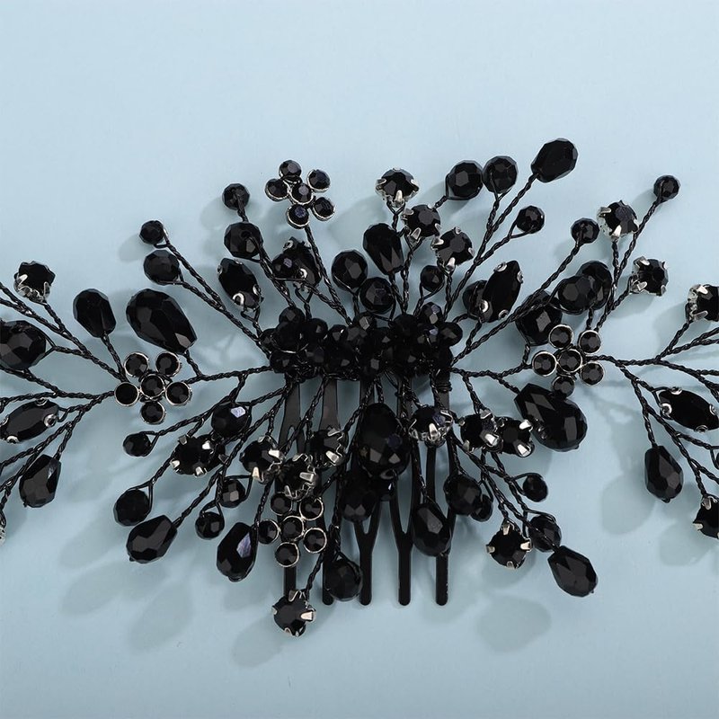 Kercisbeauty Black Beads Hair Comb for Wedding Brides Bridesmaid Crystal Black Hair Jewelry for Women Girls Halloween Costume