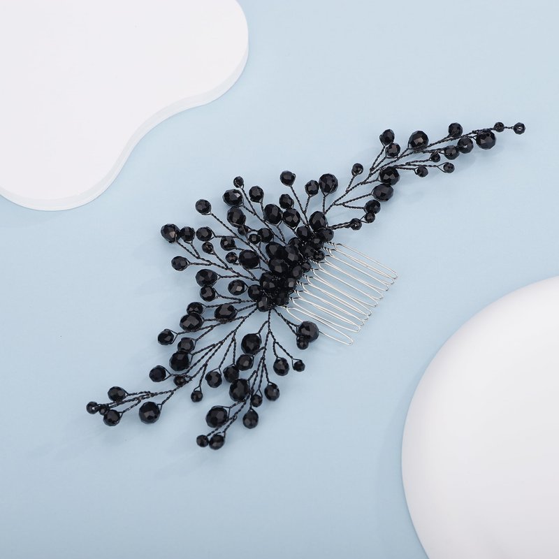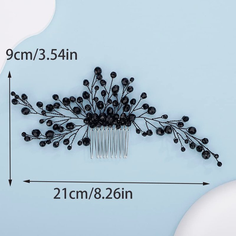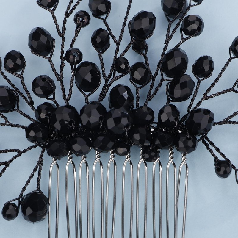Kercisbeauty Black Beads Long Hair Comb Side Headpiece for Wedding Brides Women Girls Gothic Black Hair Accessories Handmade Jewelry