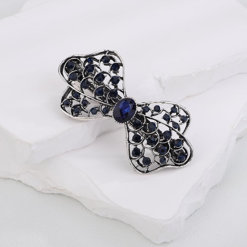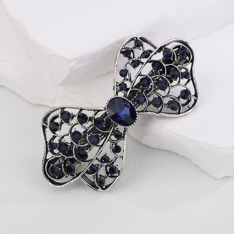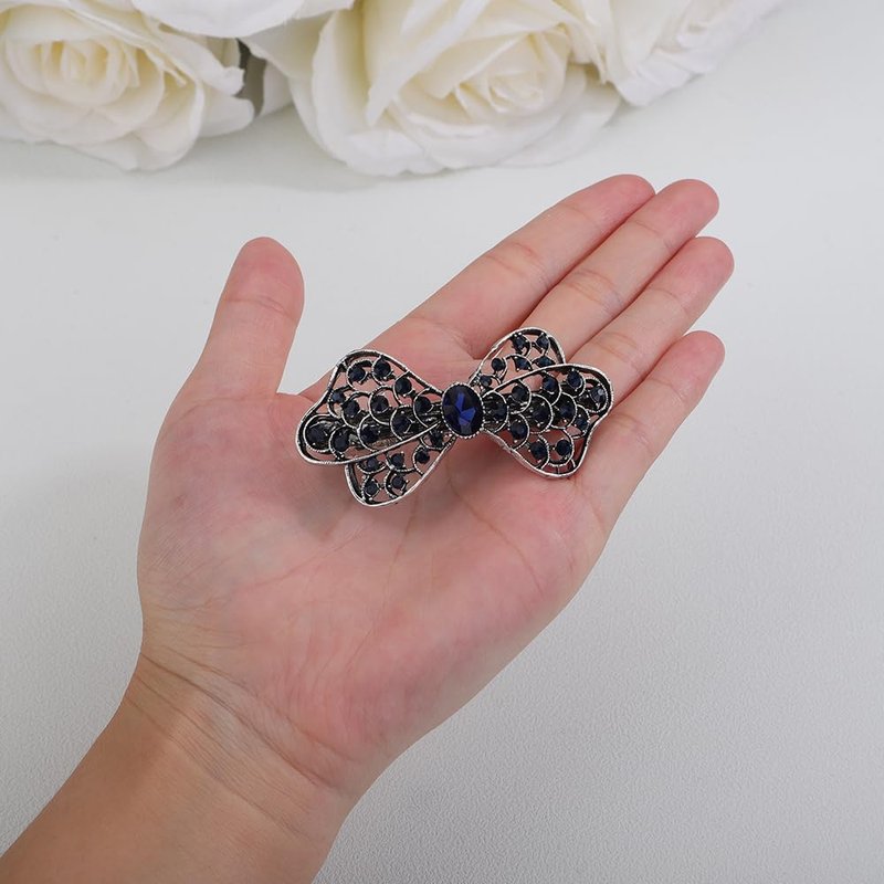Kercisbeauty Black Crystal Beads Bowtie Flower Hair Barrettes Wedding Bridal Sparkle Hair Jewelry (Bowtie)