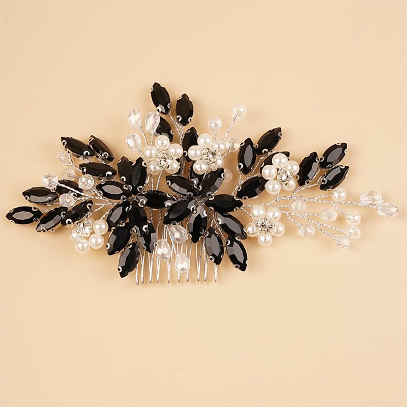 Kercisbeauty Black Crystal Hair Comb for Women Brides Bridesmaid Wedding Prom Costume Party Hair Accessories (Black)