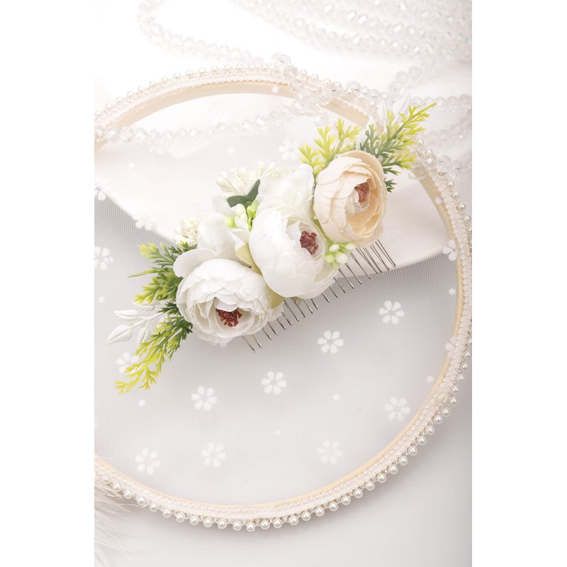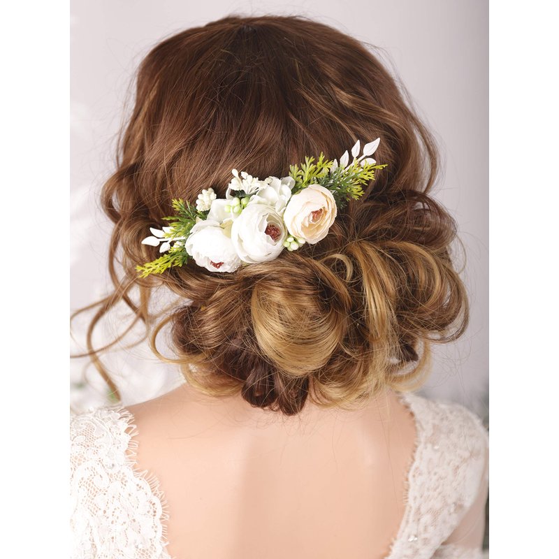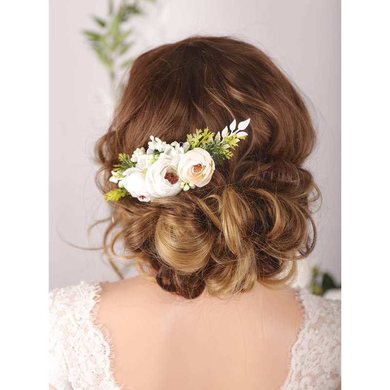 Kercisbeauty Boho Blooming Flower Hair Comb with White Leaves for Garden Wedding Brides