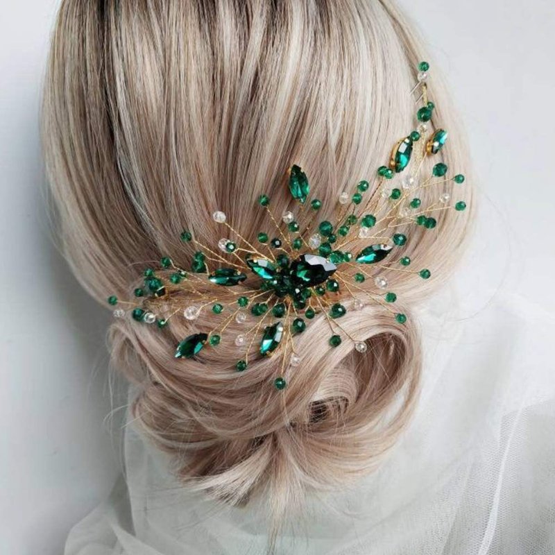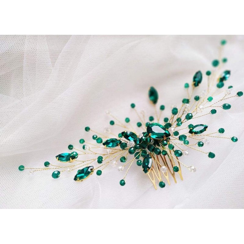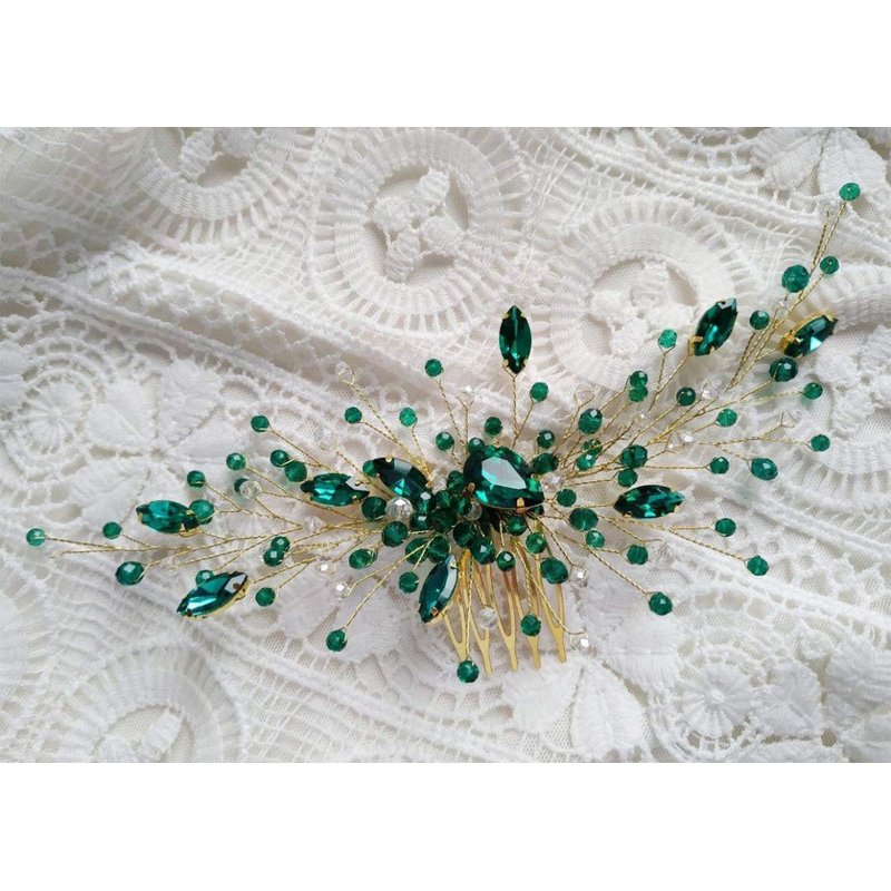 Kercisbeauty Boho Crystal Hair Comb for Women Wedding Bridal Headpiece Prom Hair Accessories (Green)