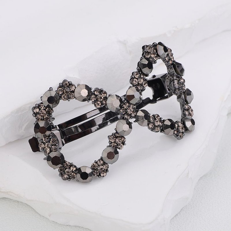 Kercisbeauty Hollow Out Bowtie Black Rhinestones Beads Hair Barrettes for Women Girls French Hair Clasp Thin Hair Jewelry (Bowtie)
