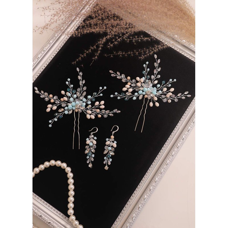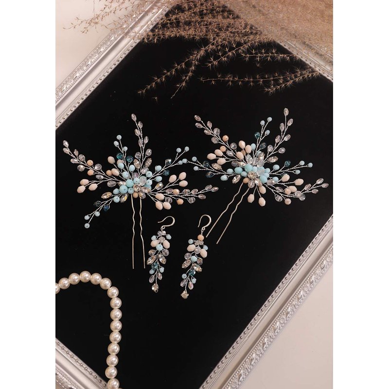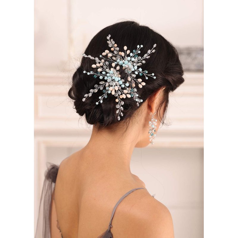 Kercisbeauty Mint Crystal Beads Hair Pins Set for Women and Girls Hair Piece and Dangle Drop Earrings Set Special Occasion Hair Accessories (Jewelry Set)