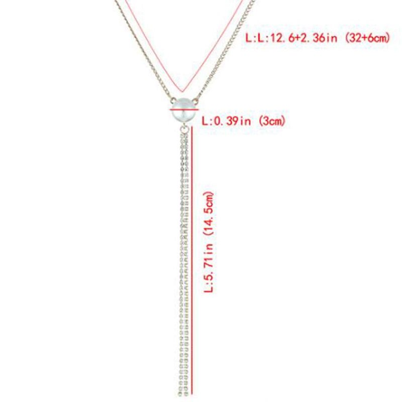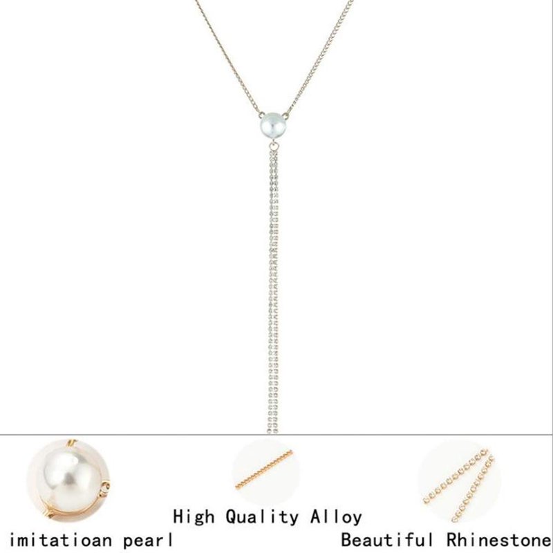 Kercisbeauty Pearl Y Necklce for Women Wedding or Evening Party Gift Her Jewelry Silver Necklace with Rhinestones Tassels