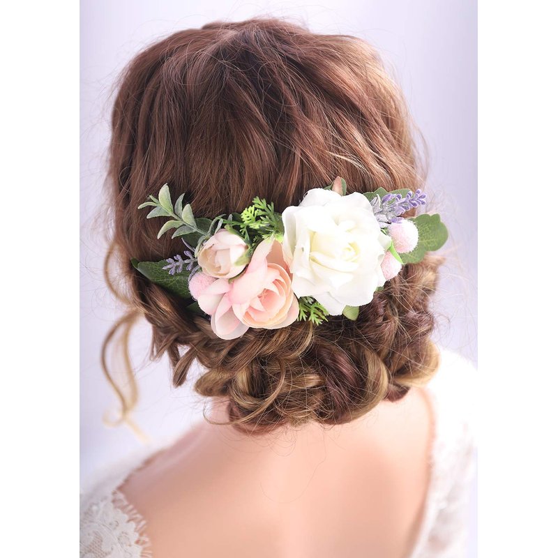 Kercisbeauty Pink and White Cute Hair Comb Prom Girl Floral Headpiece Wedding Brides Bridesmaids Flower Headband Handmade Soft Headband Flower Girl