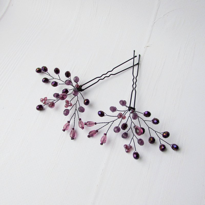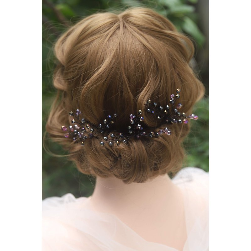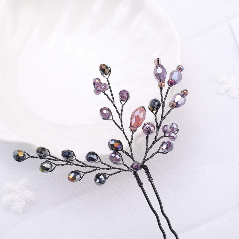 Kercisbeauty Purple Beaded Hair Pins for Wedding Bride Bridesmaid Bridal Violet Hair Piece Dancing Prom Accessory for Teen Girls Women Evening Party Pack of 3