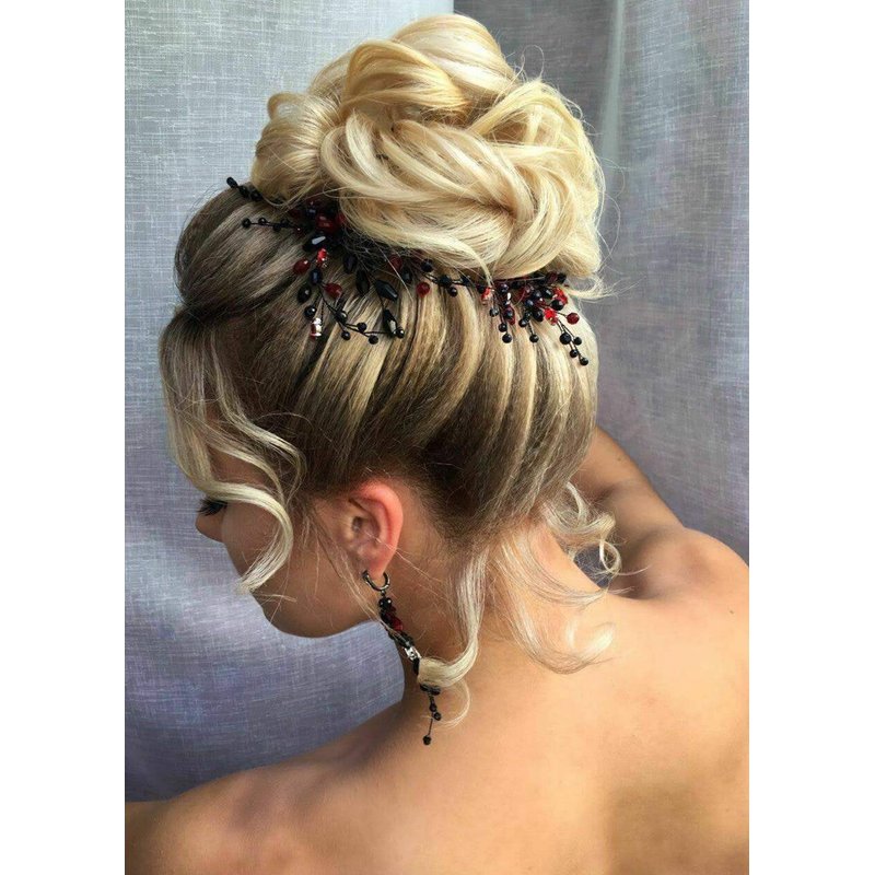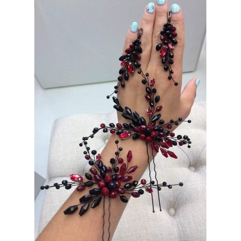 Kercisbeauty Red Hair Pins for Women Wedding Bridal Hair Piece Baroque Black Hair Accessories Prom Theme Party Crystal Hair Jewelry Set of 2