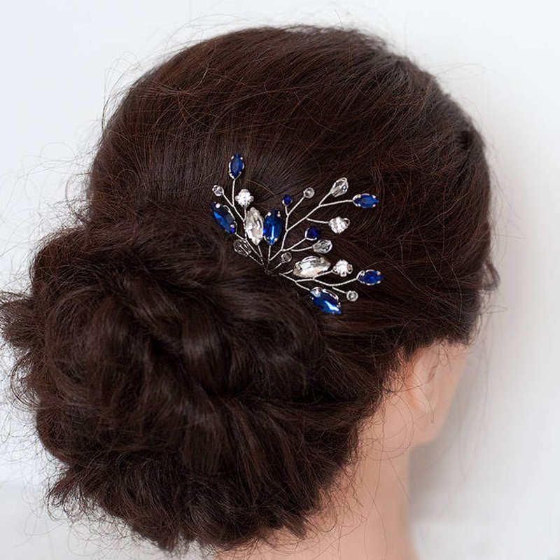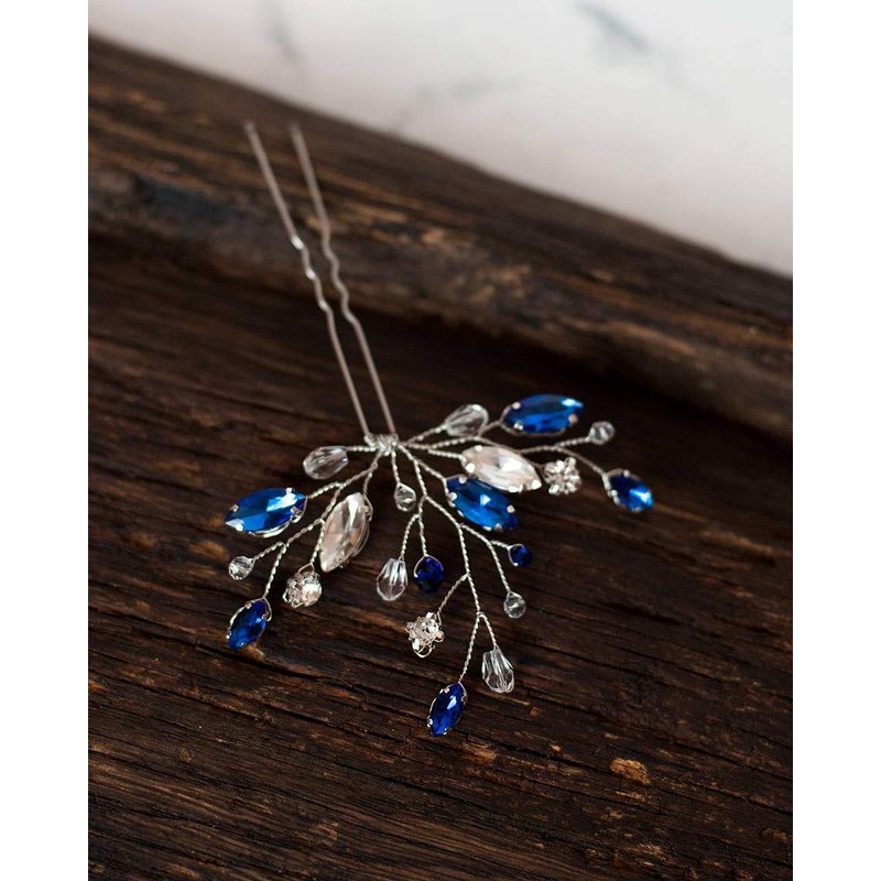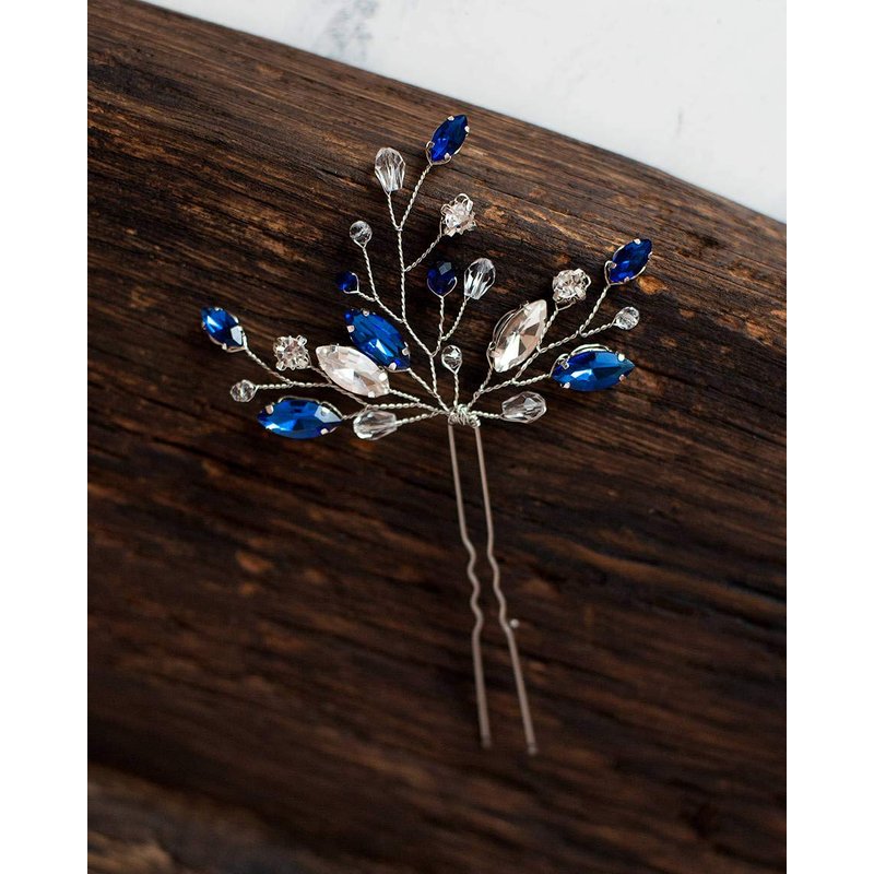 Kercisbeauty (Set of 2) Handmade Bridal Bridesmaids Flower Girl Pink Champagne Rose Gold Pearl Beads Hair Pins Headpiece for Wedding and Party (Silver) (Blue)