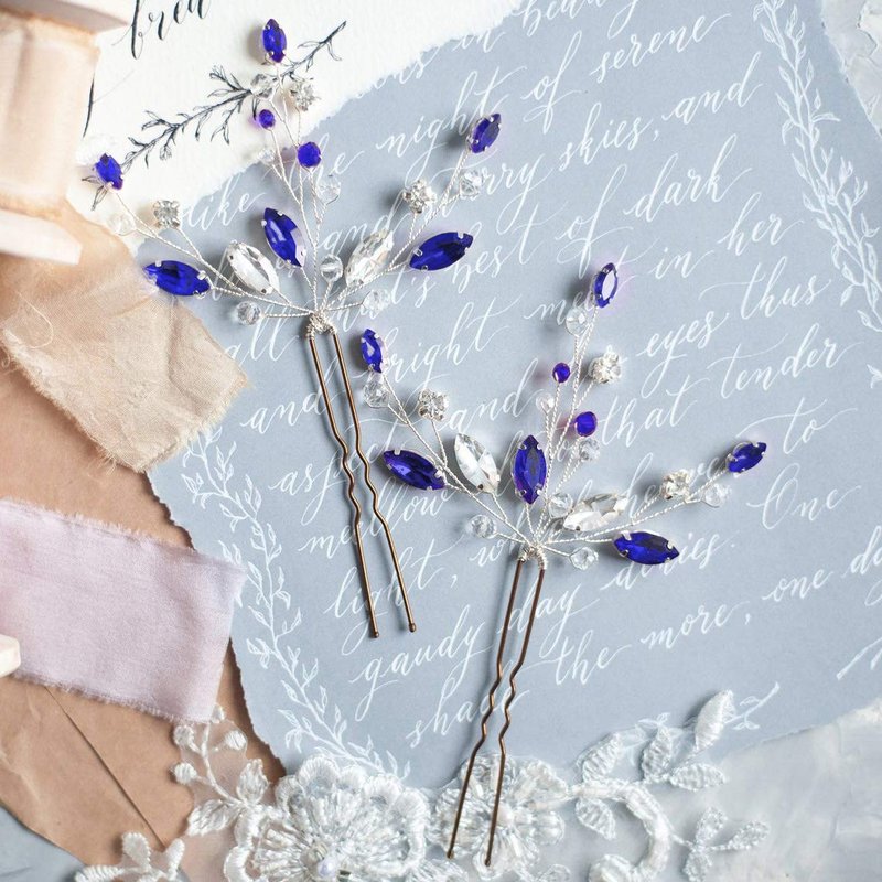 - ✿Color : Silver wire and Blue Crystal Set of 2