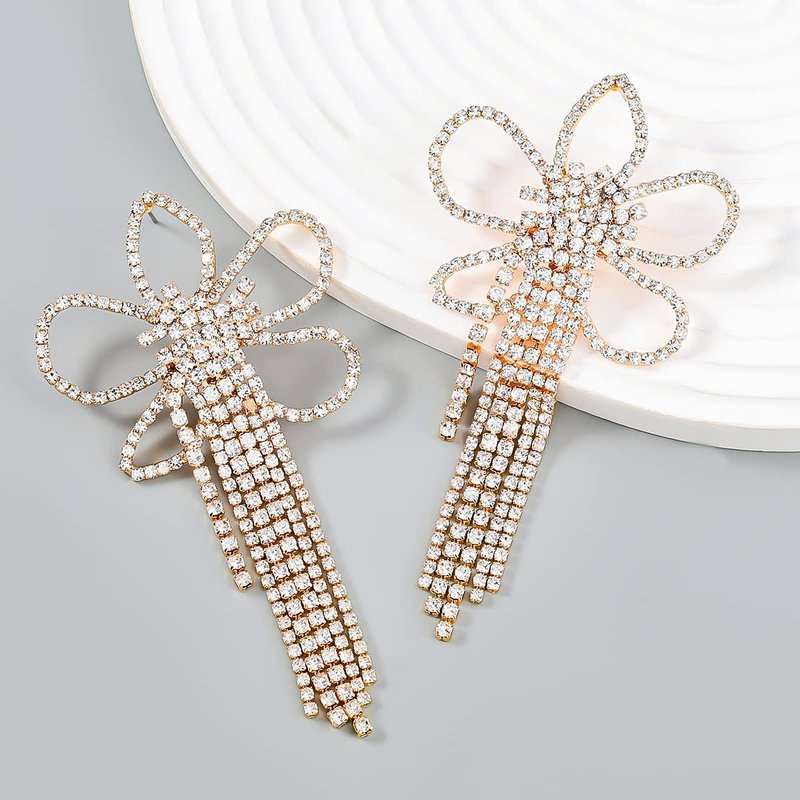 Kercisbeauty Statement Gold Tennis Chain Flower Pendant Chandelier Earrings for Women Girls Wedding Bridal Bling Tassels Jewelry (Gold)