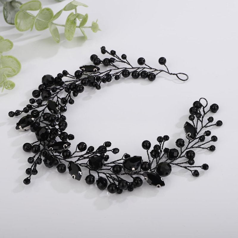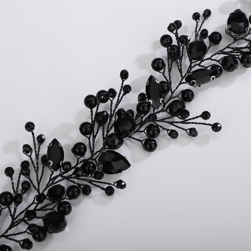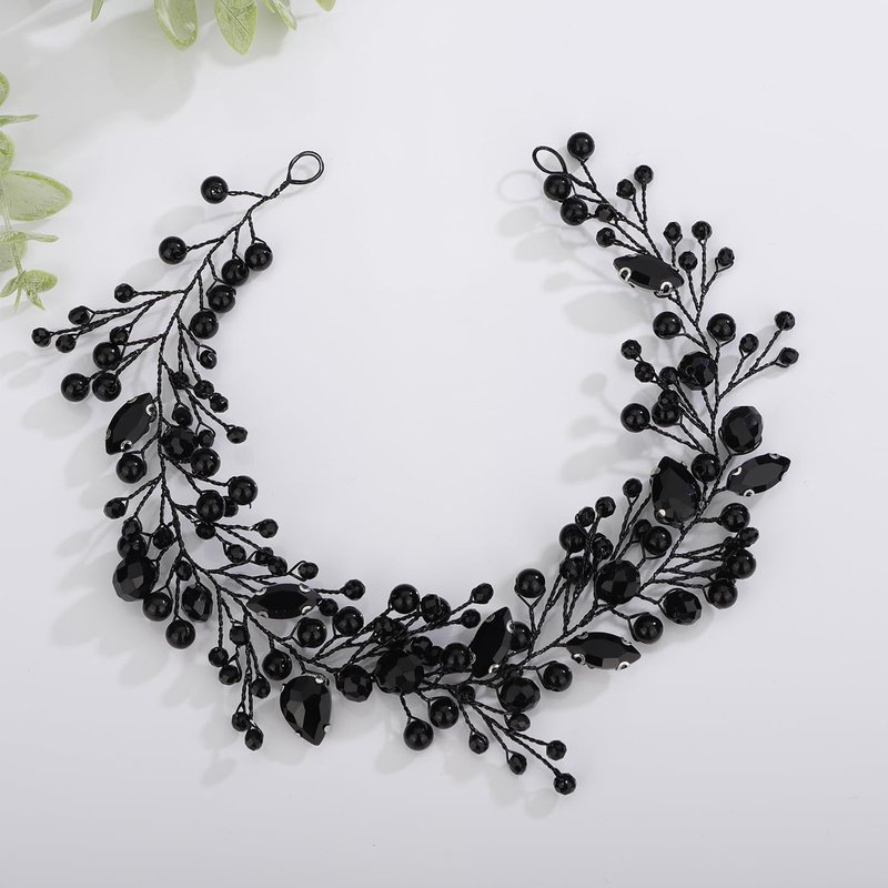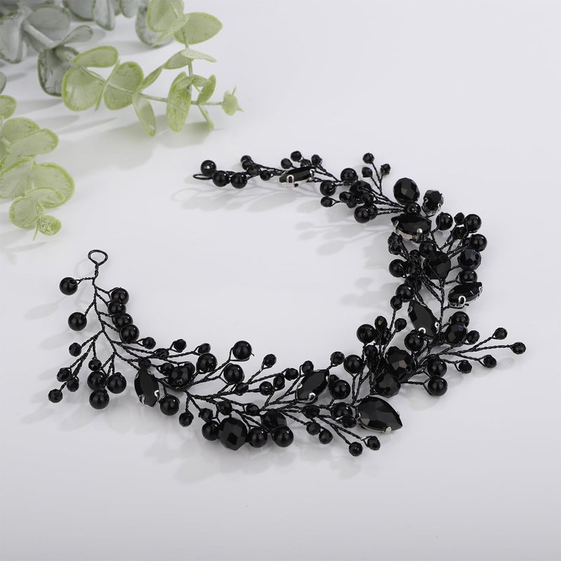 Kercisbeauty Wedding Brdial Black Rhinestones Beads Headpiece for Women Girls Halloween Party Jewelry