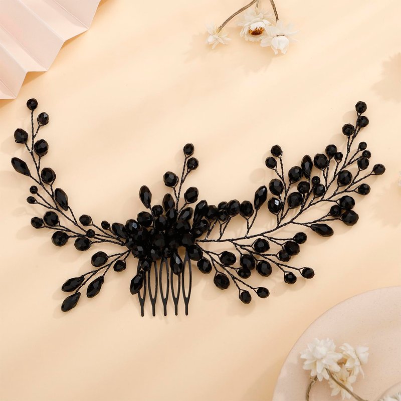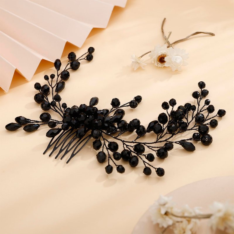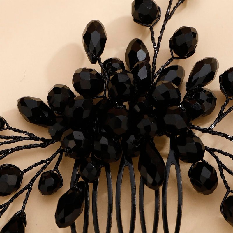 Kercisbeauty Wedding Bridal Black Hair Piece Handmade Side Hair Comb for Women Girls Halloween Cosplay Gothic Jewelry