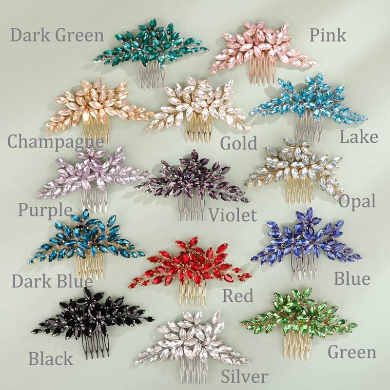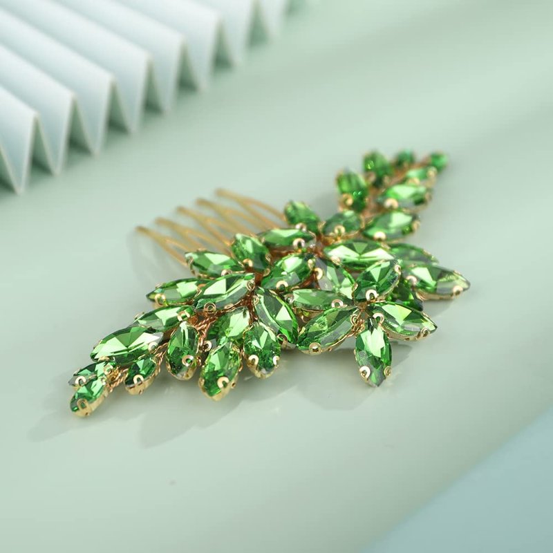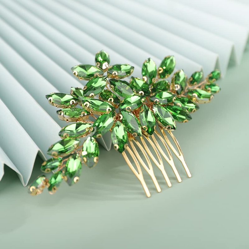 Kercisbeauty Wedding Bridal Emerald Crystal Gold Hair Comb Side Headpiece for Women Girls Prom Boho Updo Handmade Hair Accessories (Green)