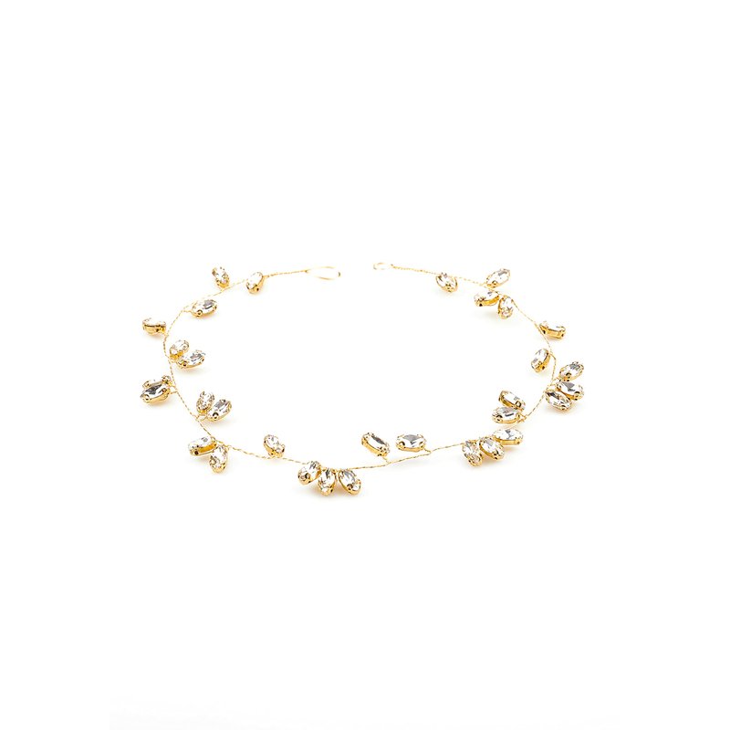 This headpiece use wire and crystal ,Headpiece are attached to the hair with the help of pins and flat pins。 Very unusual headpiece which you can decorate any hairstyle and it will complement even the most restraint dress.