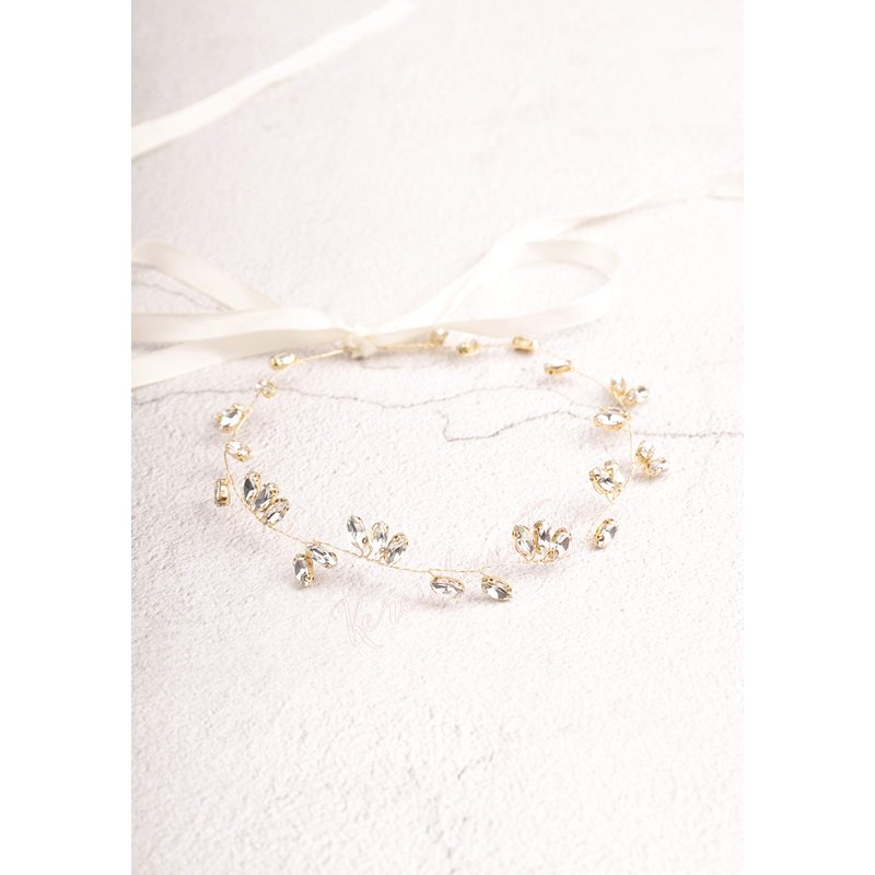 Kercisbeauty Wedding Crystal Headband for Bride Hair Vine Wreath Bridal Headpiece Prom Hair Accessories (Gold)