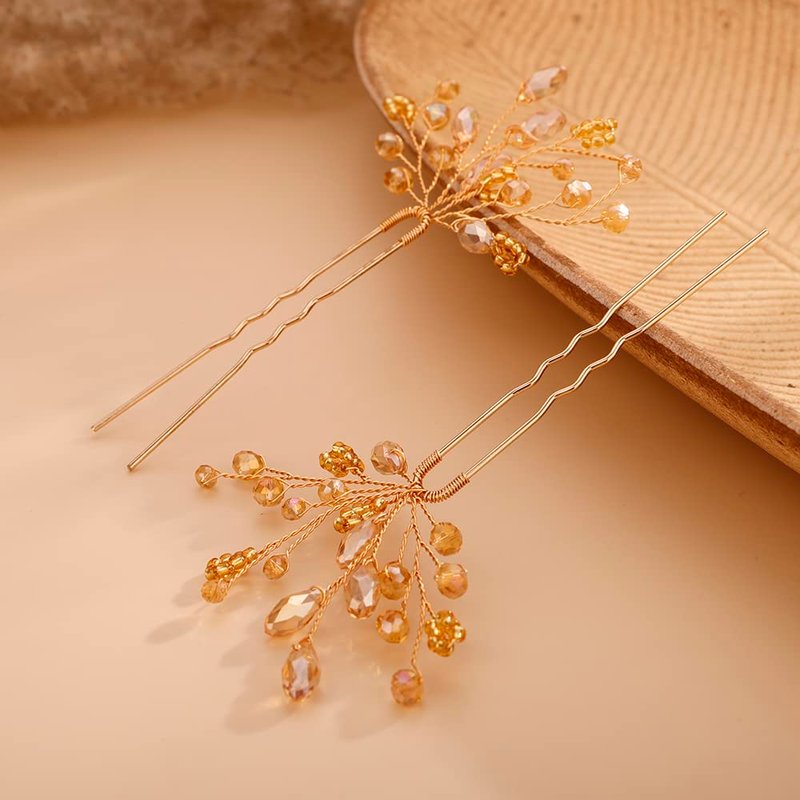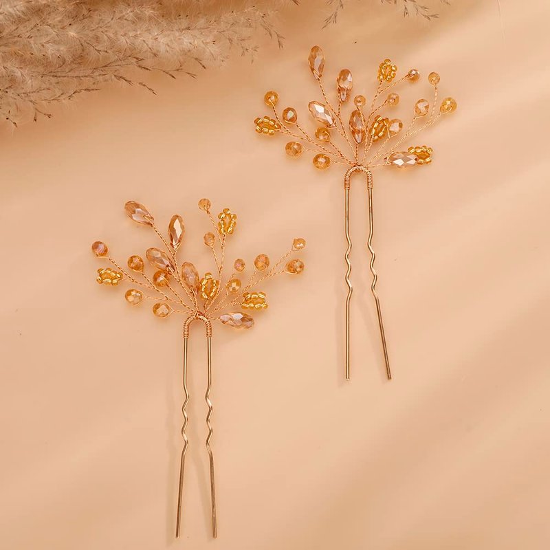 Kercisbeauty Wedding Hair Pins Crystal Hair Accessories for Women Girls Bridal Hair Clips Brides Bridesmaid Hair Dress 2pcs (Champagne Beads)
