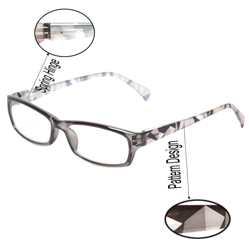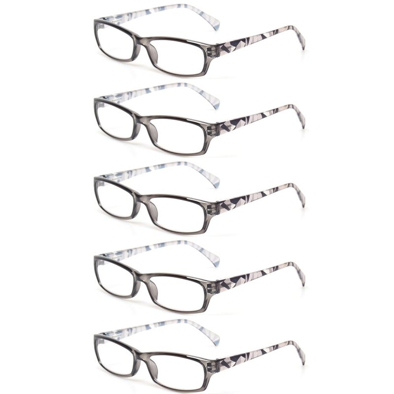 Kerecsen 5 Pairs Fashion Ladies Reading Glasses Spring Hinge Pattern Design Readers, 5 Pack Gray, Medium