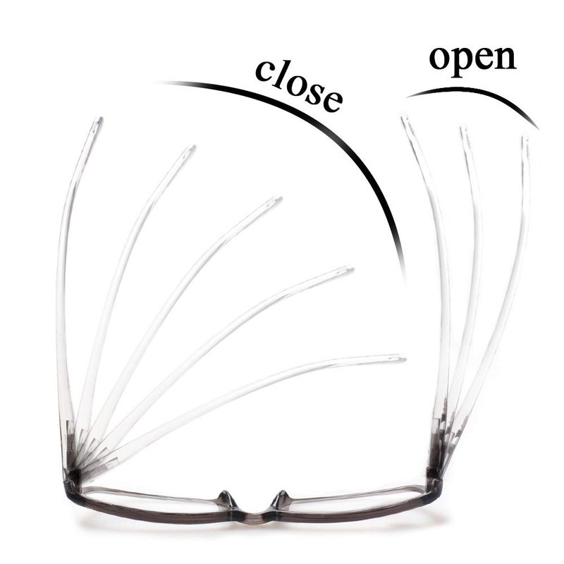 - Lightweight plastic frames and plastic lenses with durable spring hinge temples ensure a comfortable fit without uncomfortable pinching.