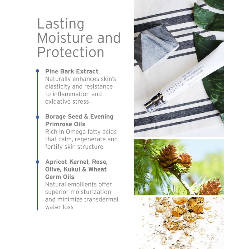 - ULTRA HYDRATING. Pine bark extract naturally enhances skin’s elasticity and resistance to inflammation and oxidative stress. Hydrating oils calm and fortify skin structure and help offer superior moisturization and minimize transdermal water loss.
