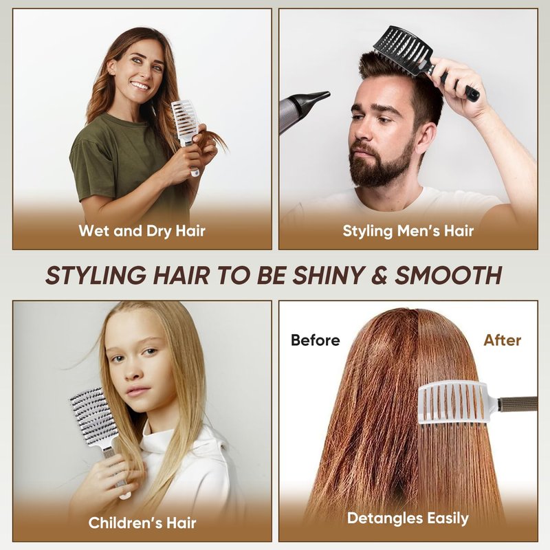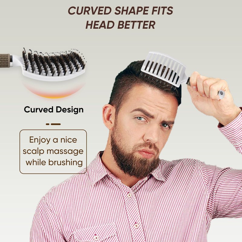 - For All Hair Types - These curved hair brushes fit for women, men and kids, and work great on curly, natural, thick, long, short, wet and dry hair. Enjoy a nice scalp massage while brushing your beautiful hair everyday.