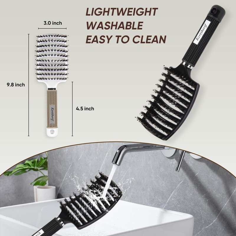 - Hair Brush Set - This paddle detangling brush is made from ABS resin material and boar bristles, which makes hair brush lightweight, reliable and easy to clean. You can massage your scalp through the nylon pins with round head without scratching or pulling, and spread natural sebum oils from the root to the tip of your hair through the boar bristles, which is good for improving your hair texture.