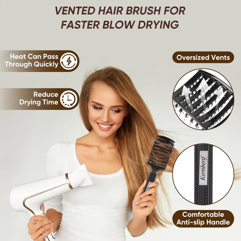 - Vented Hairbrush For Faster Blow Drying - The oversized vents design allows heat to pass through the hair brushes quickly and disperse the heat better, which reduces the time it takes to dry your hair and avoids damage to your hair. The vents also allow for more efficient airflow when styling your hair.