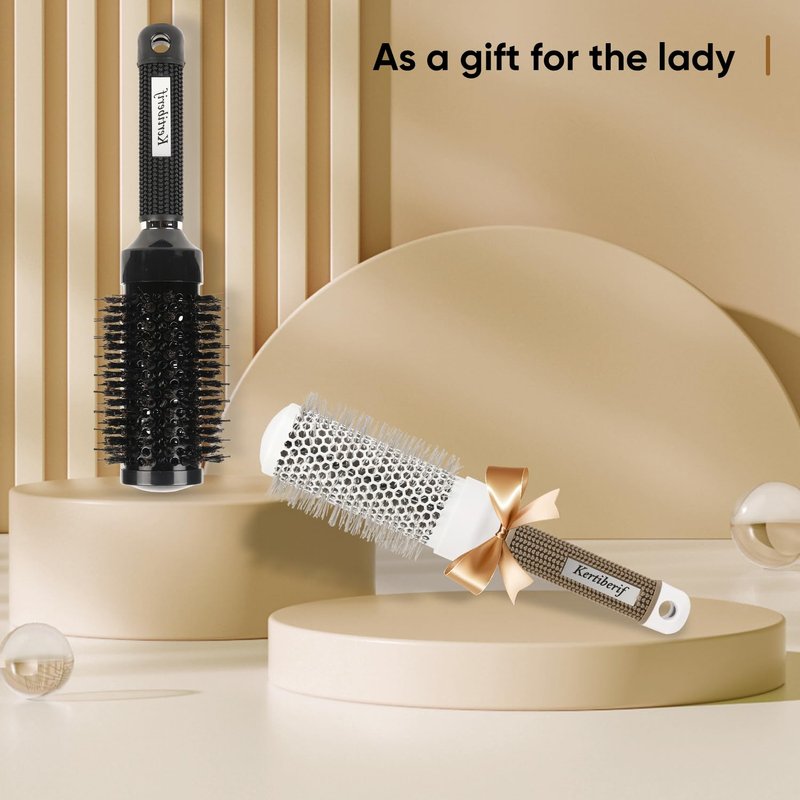 Kertiberif Round Brush for Blow Drying 2PCS, Boar Bristle Round Hair Brush, Thermal Ceramic & Ionic Tech Round Barrel Brush for Styling, Curling and Straightening & Add Volume (1.7 Inch)