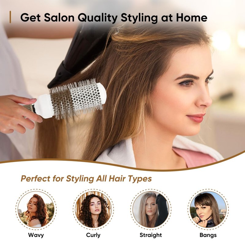 - Get Salon Quality Blow Drying & Styling at Home - Our vented ceramic round barrel hairbrush is perfect for all hair types and hair styles, especially to add volume, create waves and generate curls for your hair. Create a perfect hairstyle that suits you and make yourself unique as well as confident everyday.
