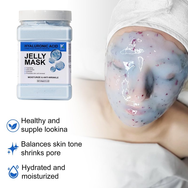 - 【Hyaluronic acid】- KERUILA's jelly mask powder contains Hyaluronic acid, it's has a certain activity, can penetrate into the skin strongly, participate in and improve the metabolism of skin cells, maintain the integrity of the stratum corneum moisture and fiber structure, improve the living environment of skin cells and promote the metabolism of skin tissue, enhance blood circulation, To achieve the purpose of moisturizing the skin.
