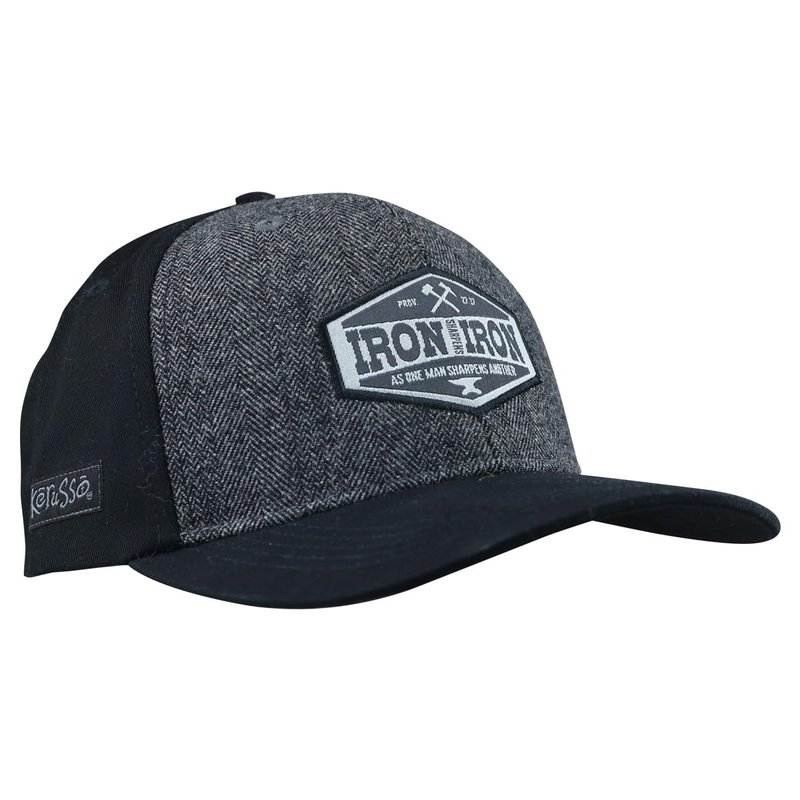 Kerusso SWC4441 Iron Sharpens Iron Mens One Size Fits Most All Cotton Mens Baseball Cap Hat for Outdoor Activities, Black/Grey