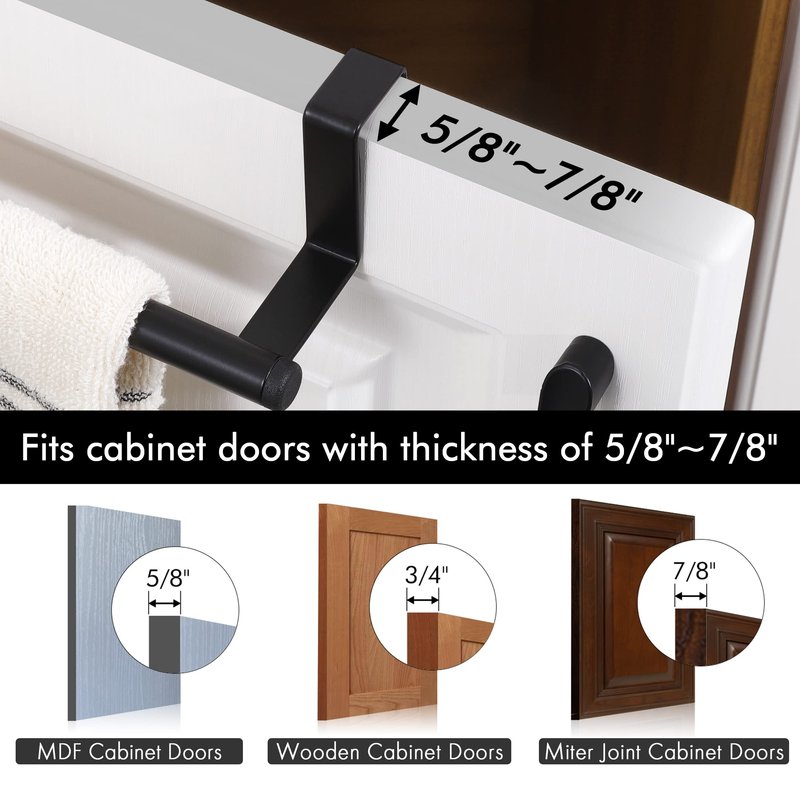 - [Measure Before Purchasing] This over cabinet towel bar fits cabinet doors that are between 5/8"-7/8" wide. Check that your cabinet door is less than 0.8"(20mm) thick and the door gap is 0.08"(2mm) prior to purchasing.