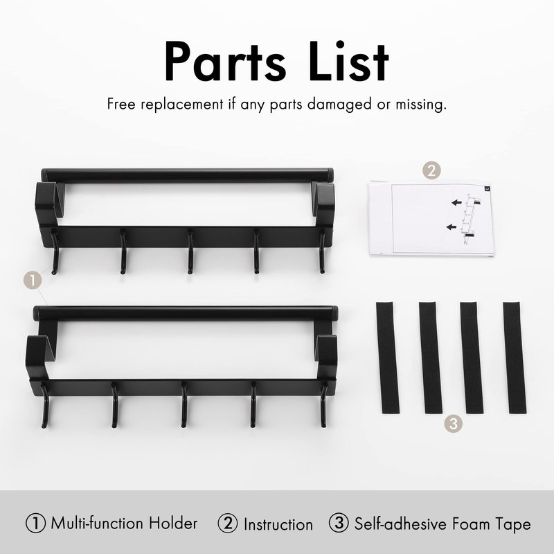 - [Sturdy and Durable] This KES over the cabinet door organizer is made of metal, which makes it strong and not easily broken. The high-quality powder spraying on the coating makes it durable and not easily rusted or peeled. Perfect for use in environments such as kitchens and bathrooms. In addition, the hooks can hold up to 6.6lbs/3kg each, without worrying about them falling off or the hooks bending under the weight.