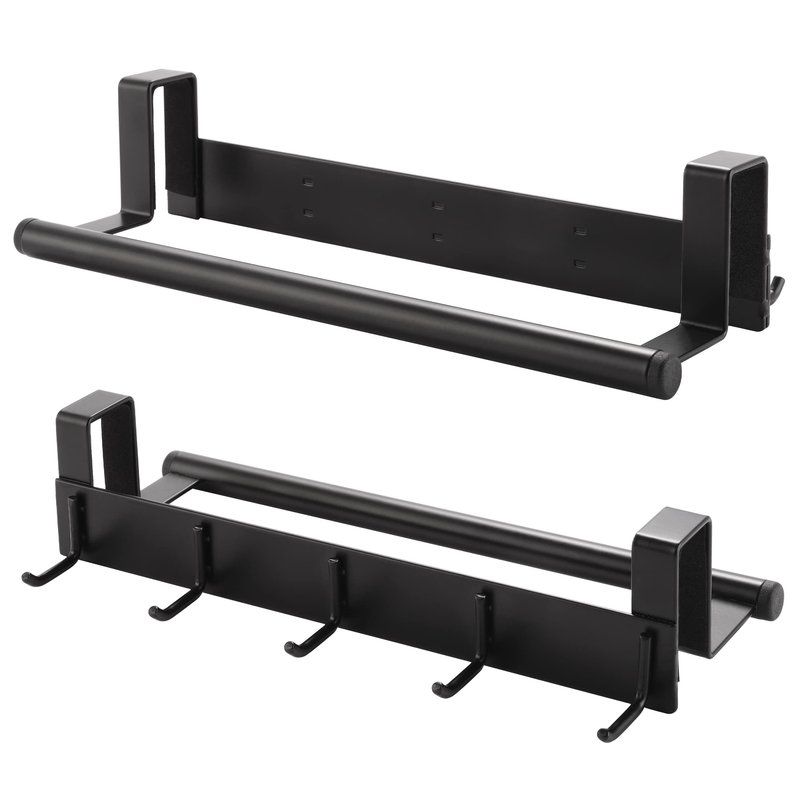 KES Over The Cabinet Door Towel Bar with Hooks, Kitchen Towel Holder with Hooks for Hanging Utensils, Over The Cabinet Door Organizer with Hook 2 Pack, Matte Black, KUR527-BK-P2