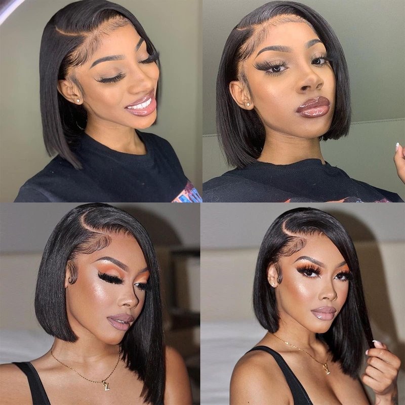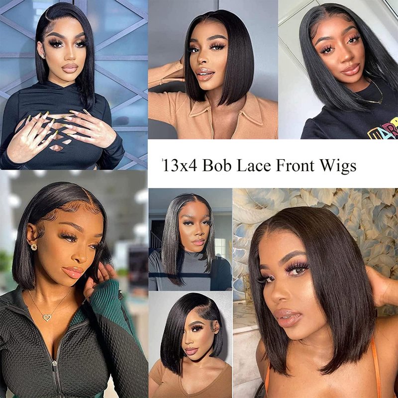 KESEN Bob Wig Human Hair 13x4 HD Lace Front Wigs for Black Women Human Hair Side Part Frontal Bob Wig, Ailwelia Glueless Short Human Hair Wigs for Black Women Pre Plucked 180% Density 10 Inch