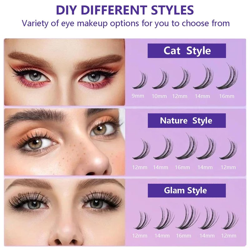 - 💖 DIFFERENT LOOK STYLE DEPENDS ON YOU: Create a customizable lash look with our individual lash clusters in different lengths (9-16mm). Clustered eyelash packages are versatile and can be used for a variety of occasions, whether it's a night out with friends, a special occasion, or a day at work. You'll be achieving all of these looks in no time!