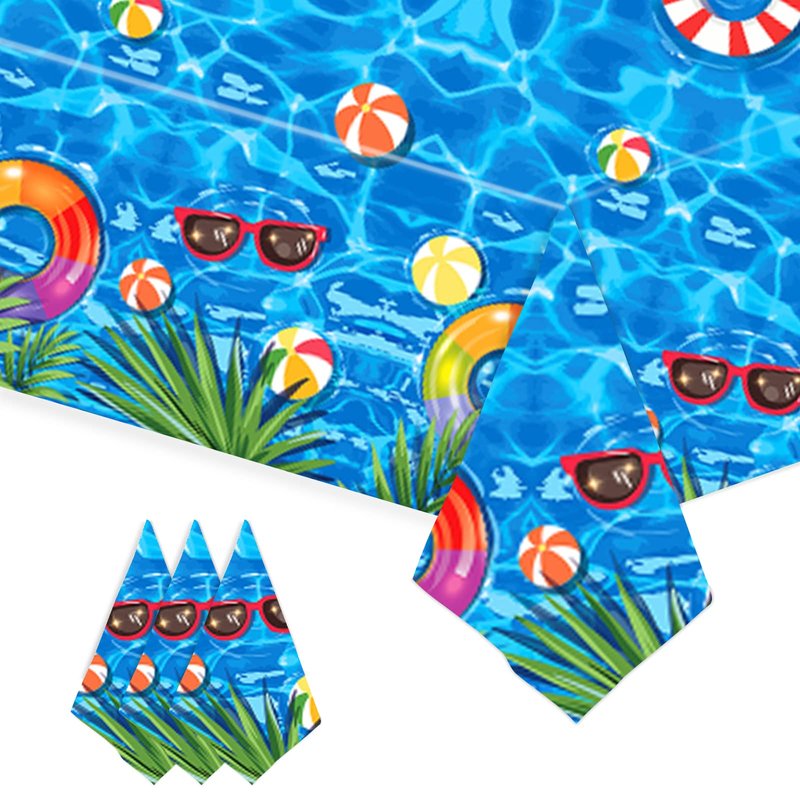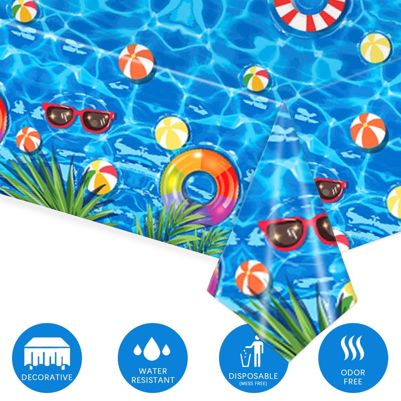 - Protection: The swimming pool party tablecovers can protect your tables from scratches, splashes and spills not easily torn.After the party, just toss them away or simply wipe down and store for next time