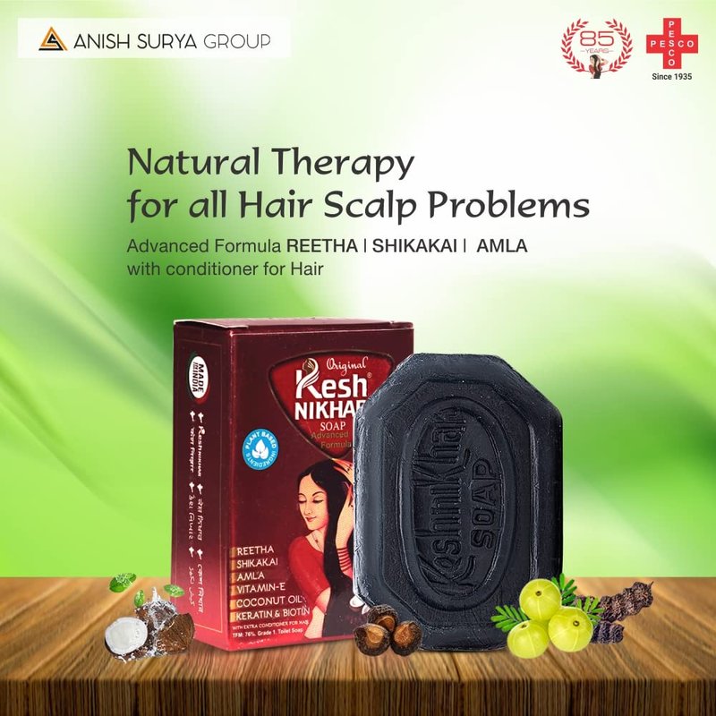 Kesh Nikhar Advanced Formula Soap Solid Shampoo Bar Natural Hair Care & Cleansing Soap - Amla, Reetha, Shikakai For Dandruff, with Coconut Oil Dry Hair & Scalp Size 100gm Each (PACK OF 6)