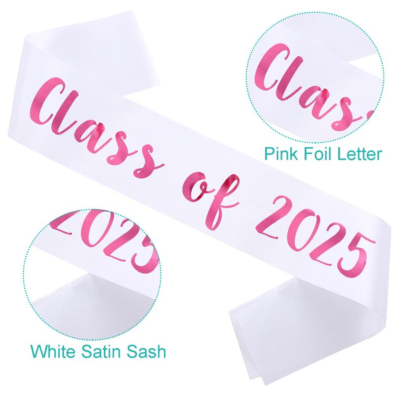 - Class of 2025 Sashes: white Satin Sash with pink "Class of 2025", prepare and celebrate your graduation in advance, you can also share with your friends which is the congratulations that you and your friends are graduated.
