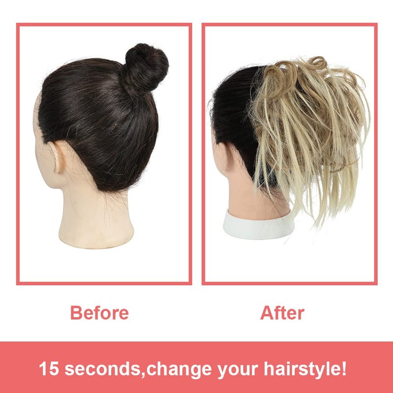 - 3.Messy bun hair piece use of high-elastic rubber bands,durable and hard to break,after wearing,it won't fall off all day.