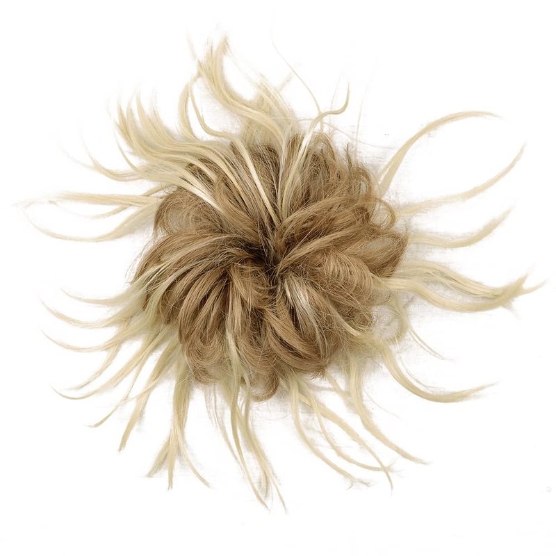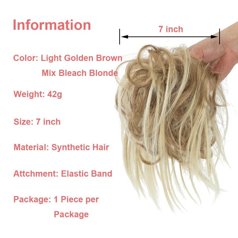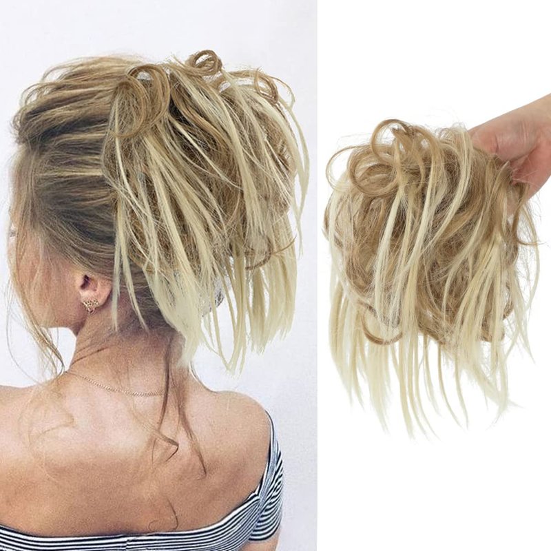 KETHBE Messy Bun Hair Piece,Synthetic Tousled updo Hair Buns Hair Piece Short Ponytail Faux Hair Scrunchie with Elastic Rubber Band Hair Bun Pieces for Women (Light Golden Brown Mix Bleach Blonde)