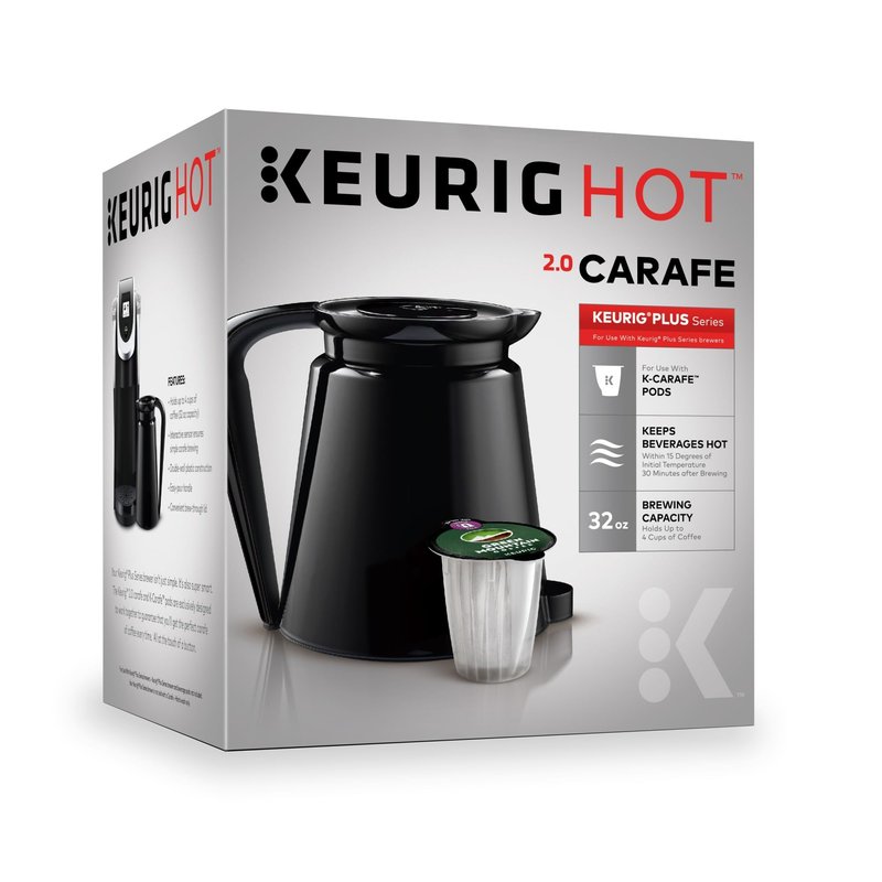 Keurig 2.0 Plastic Carafe 32oz Double-Walled with Easy-Pour Handle, Holds and Dispenses Up to 4 Cups of Hot Coffee, Compatible With Keurig 2.0 K-Cup Pod Coffee Makers, Black