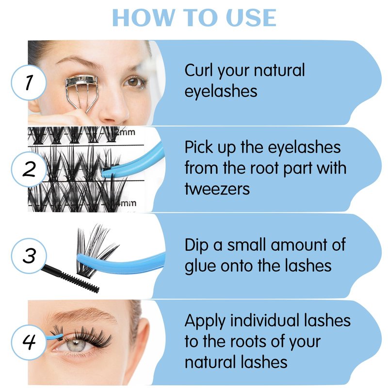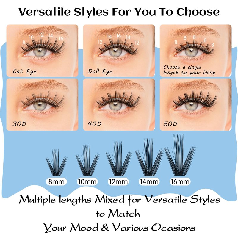 - · Easy Application: You don't need specialized skills to use these individual lashes easily. With a little practice, you can get the same eyelash extensions in no time as you would at the salon.Save your valuable time and money. Whether you are a novice or an experienced lash enthusiast, these lash clusters are sure to please.