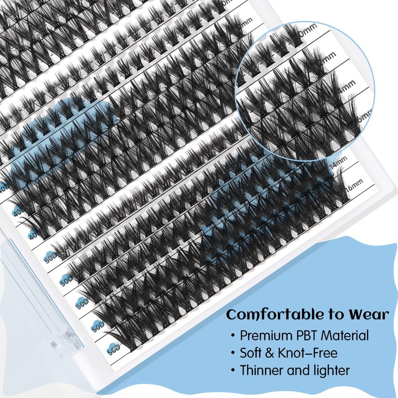- · Upgrade Lash Clusters: The cluster eyelashes are made of imported PBT fiber, which makes them softer, lighter, durable and long lasting. The slimmer lash band can perfectly fit your eye shape and bring you a comfortable wearing experience.