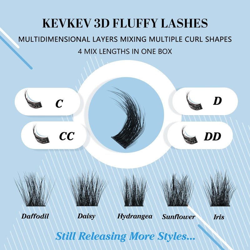 - New Series for Your Lashes: KevKev 3D Fluffy series lash clusters adopted super soft and lightweight materials to creat multidimensional cluster lashes for DIY lashes hobbyist. These 3D Fluffy lashes are designed to offer the fluffier appearance that more naturally extension look like real lashes.