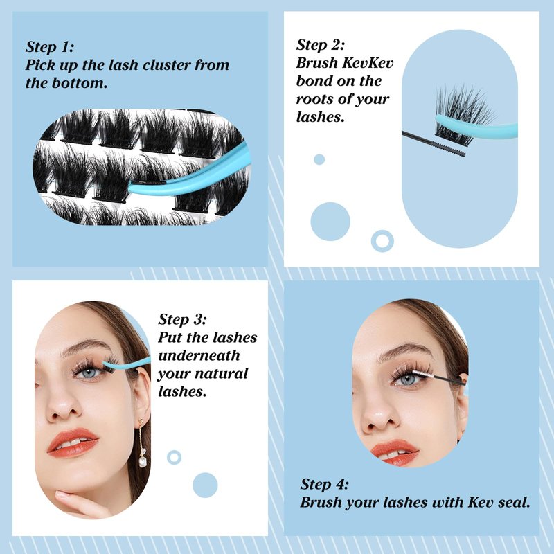 - Beginner-friendly: With a little practice, you can do any lash style you want with KevKev lash clusters in 15 minutes. Combined with KEV's bond and seal, lashes can last up to three days or more.