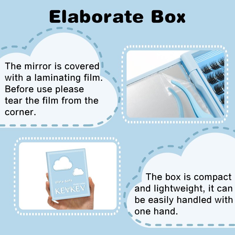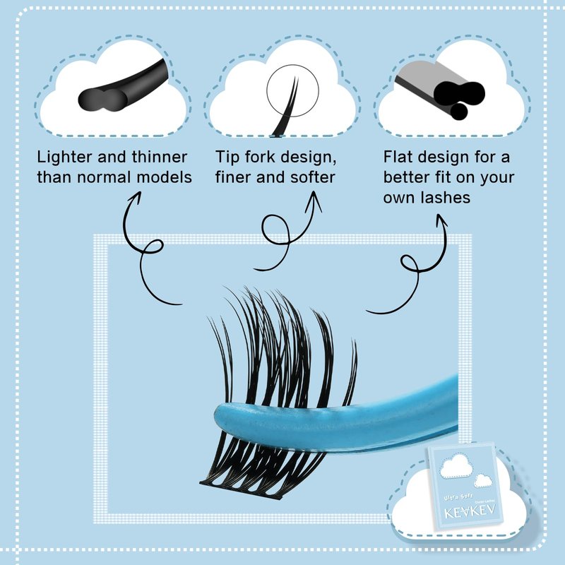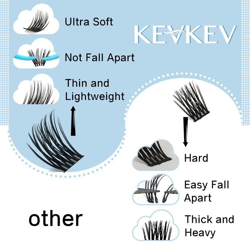 - Ultra Soft Lash Clusters: Experience the lightweight and thin design of KevKev ultra soft lash clusters. They are specifically crafted to be lighter and thinner than standard models, ensuring a comfortable and natural feel when worn.