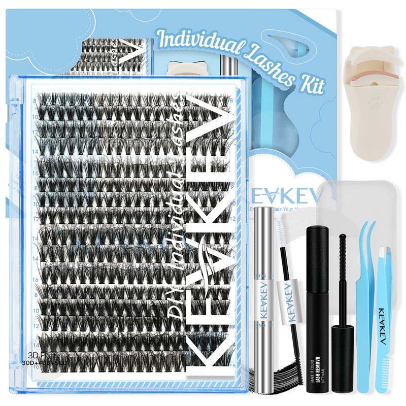 KevKev Lash Clusters Kit 3D Fluffy Cluster Lashes 30D+40D+50D 320 Pcs DIY Lash Extensions Eyelash Clusters GLue Individual Lashes Remover Cluster Thin Band & Soft (Fluffy 30D+40D+50D Kit,8-16mix)