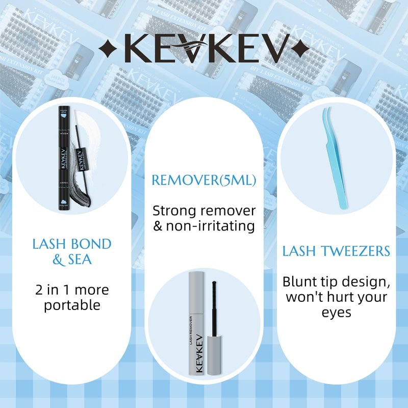 - All in 1 Lash Extension Kit: You will get 168pcs lash clusters, 1 lash tweezer, 1 double-ended lash bond and seal and 1 nice lash remover. With KEVKEV eyelash extension kit, you can easily get eyelash extensions at home and create your own eyelash style.