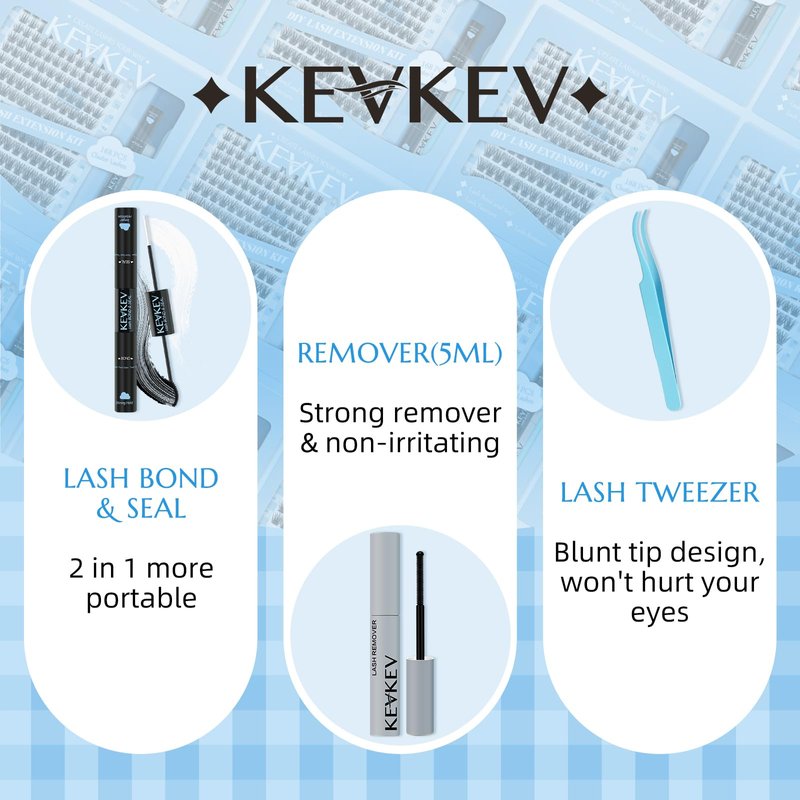- All in 1 Lash Extension Kit: You will get 168pcs lash clusters, 1 lash tweezer, 1 double-ended lash bond and seal and 1 nice lash remover. With KEVKEV eyelash extension kit, you can easily get eyelash extensions at home and create your own eyelash style.